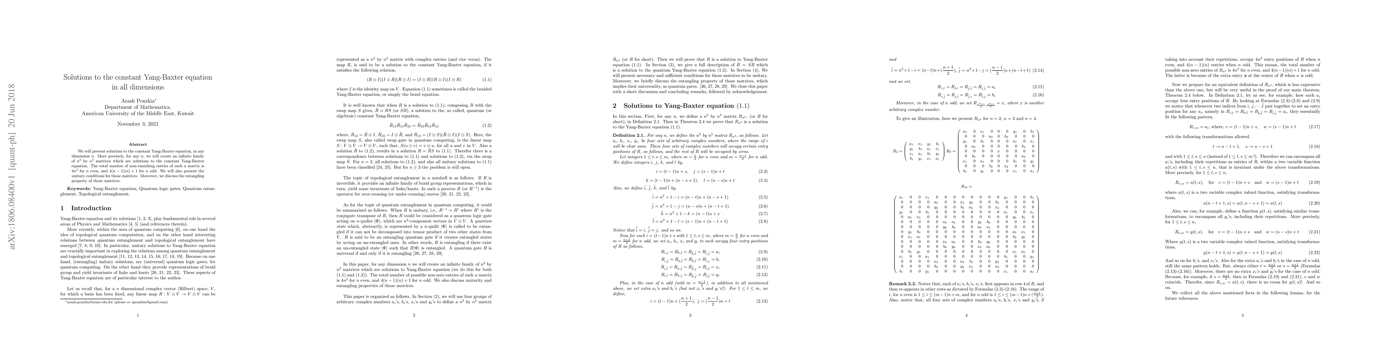 The research presents solutions to the constant Yang-Baxter equation in any dimension n, constructing an infinite family of n² by n² matrices as solutions, with specific conditions for even and odd dimensions.