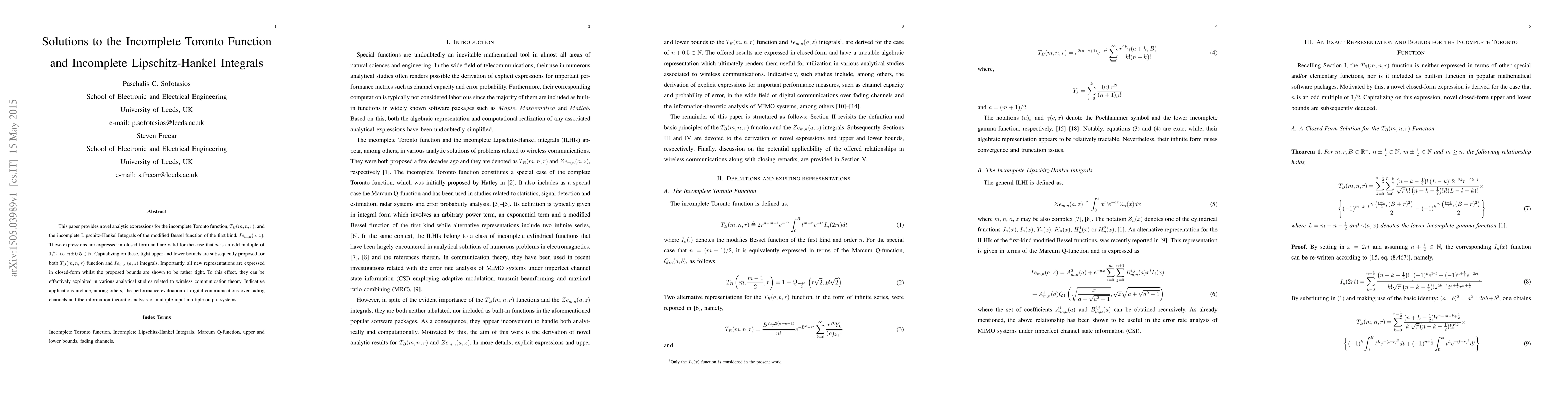 This paper provides novel analytic expressions for the incomplete Toronto function, $T_{B}(m,n,r)$, and the incomplete Lipschitz-Hankel Integrals of the modified Bessel function of the first kind, $Ie_{m,n}(a,z)$. These expressions are expressed in closed-form and are valid for the case that $n$ is an odd multiple of $1/2$, i.e. $n \pm 0.5\in\mathbb{N}$. Capitalizing on these, tight upper and lower bounds are subsequently proposed for both $T_{B}(m,n,r)$ function and $Ie_{m,n}(a,z)$ integrals. Importantly, all new representations are expressed in closed-form whilst the proposed bounds are shown to be rather tight. To this effect, they can be effectively exploited in various analytical studies related to wireless communication theory. Indicative applications include, among others, the performance evaluation of digital communications over fading channels and the information-theoretic analysis of multiple-input multiple-output systems.