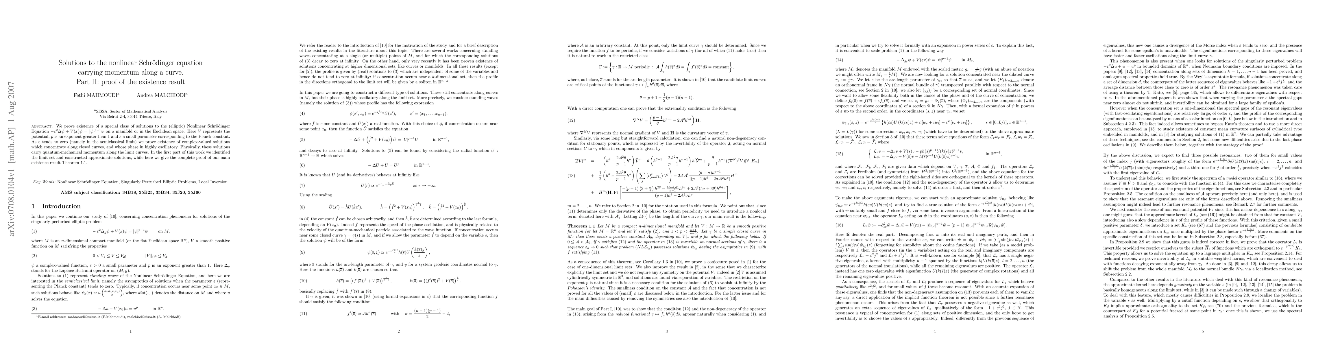 This paper presents a proof for the existence of specific solutions to the Nonlinear Schrödinger Equation, which carry momentum along closed curves as the quantum parameter approaches zero. These solutions, physically interpreted as quantum mechanical momentum carriers, were previously approximated; this part focuses on providing a rigorous mathematical proof.