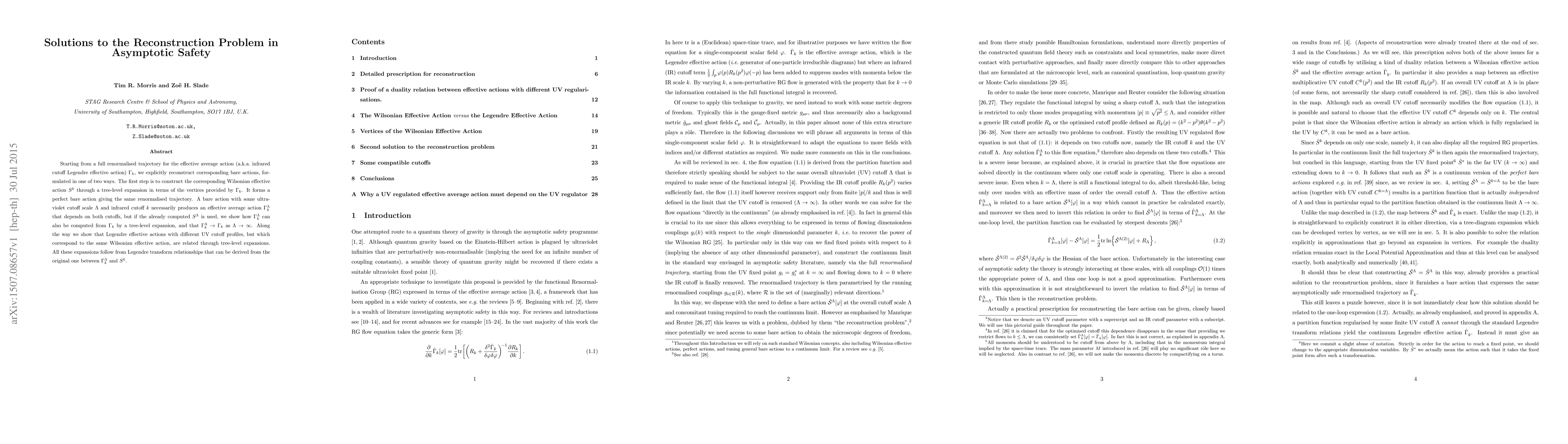 This paper reconstructs bare actions from the full renormalised trajectory of the effective average action $\Gamma_k$ using tree-level expansions. It demonstrates that different Legendre effective actions with varying UV cutoffs, yet corresponding to the same Wilsonian effective action, can be related through these expansions.