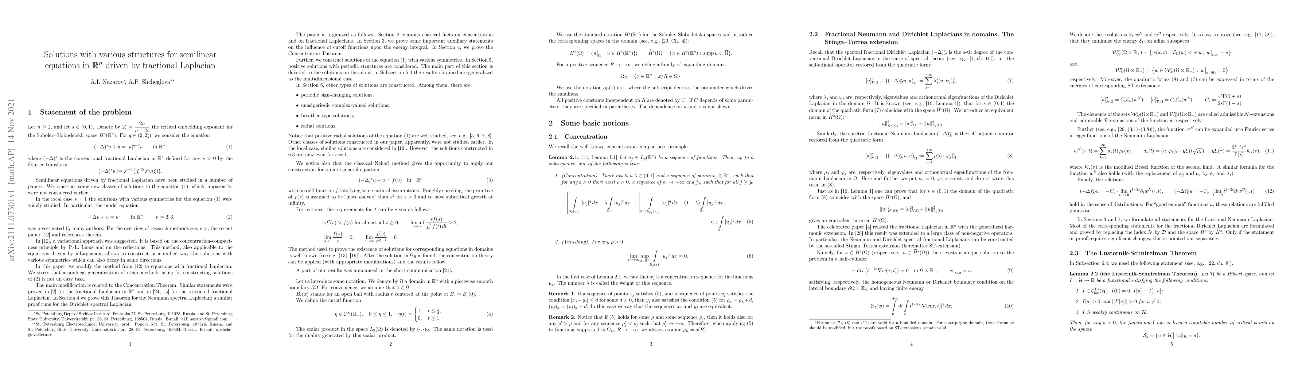 We study bounded solutions to the fractional equation $(-\Delta)^s u + u - |u|^{q-2}u = 0$ in $\mathbb R^n$ for $n\ge2$ and subcritical exponent $q>2$. Applying the variational approach based on concentration arguments and symmetry considerations which was introduced by Lerman, Naryshkin and Nazarov (2020) we construct several types of solutions with various structures (radial, rectangular, triangular, hexagonal, quasi-periodic, breather type, etc.).