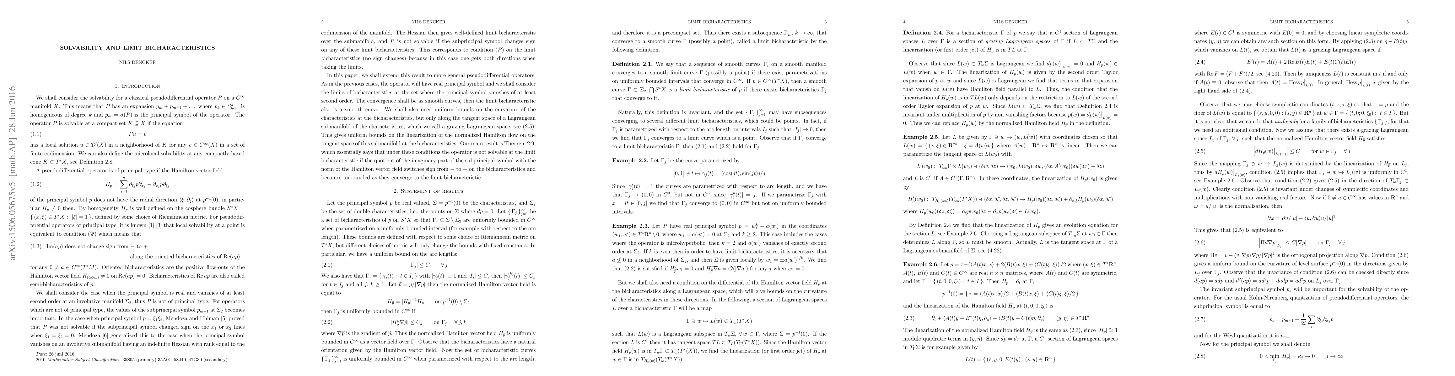 We shall study the solvability of pseudodifferential operators which are not of principal type. The operator will have real principal symbol and we shall consider the limits of bicharacteristics at the set where the principal symbol vanishes of at least second order. The convergence shall be as smooth curves, then the limit bicharacteristic is a smooth curve. We shall also need uniform bounds on the curvature of the characteristics at the bicharacteristics, but only along the tangents of a given Lagrangean manifold. This gives uniform bounds on the linearization of the normalized Hamilton flow on the tangent space of this manifold at the bicharacteristics. If the quotient of the imaginary part of the subprincipal symbol with the norm of the Hamilton vector field switches sign from $-$ to $+$ on the bicharacteristics and becomes unbounded as they converge to the limit, then the operator is not solvable at the limit bicharacteristic.