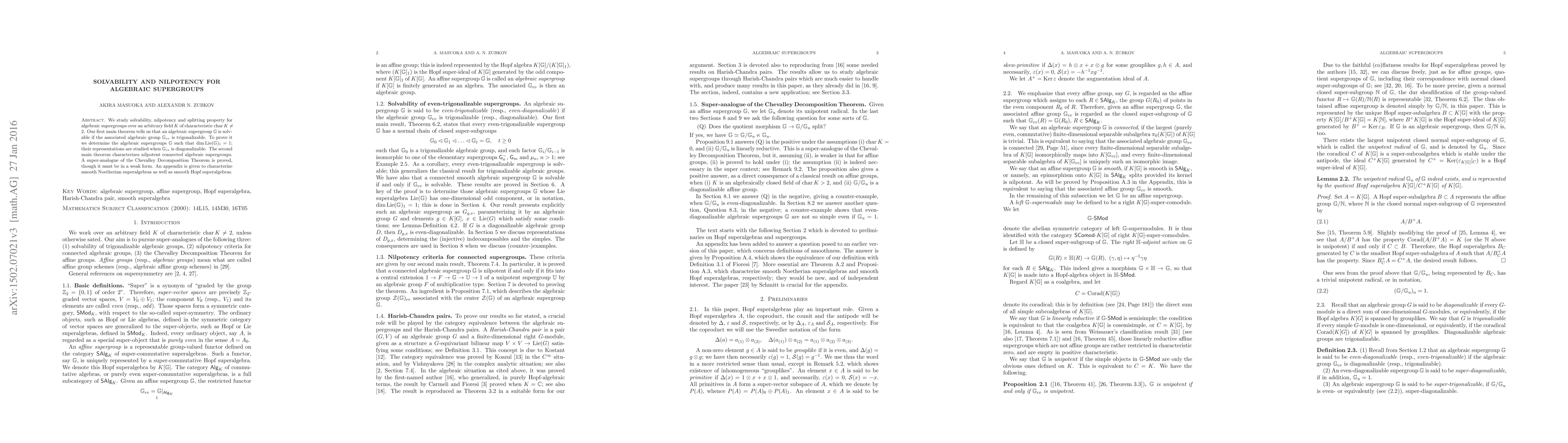 This paper explores solvability and nilpotency in algebraic supergroups over fields of characteristic not equal to 2. The main theorems establish conditions under which an algebraic supergroup is solvable and characterize nilpotent connected algebraic supergroups, with an appendix discussing smooth superalgebras and Hopf superalgebras.