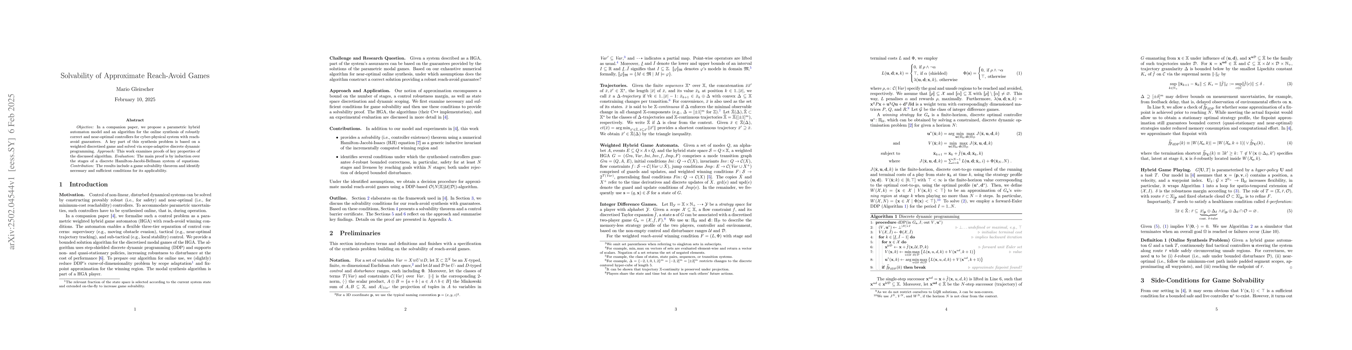 This research introduces a game solvability theorem with necessary and sufficient conditions, along with local controllability and robustness analysis, distinguishing it from previous work focused on reachability or safety guarantees alone.