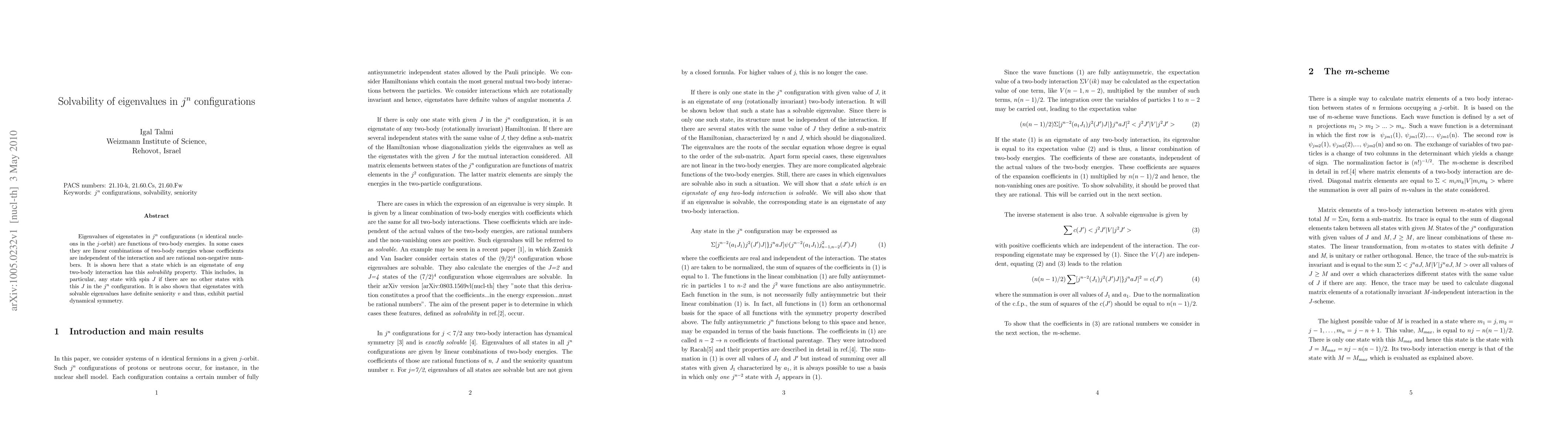 Eigenvalues in certain nuclear configurations can be expressed as linear combinations of two-body energies with rational coefficients, implying solvability for specific states.