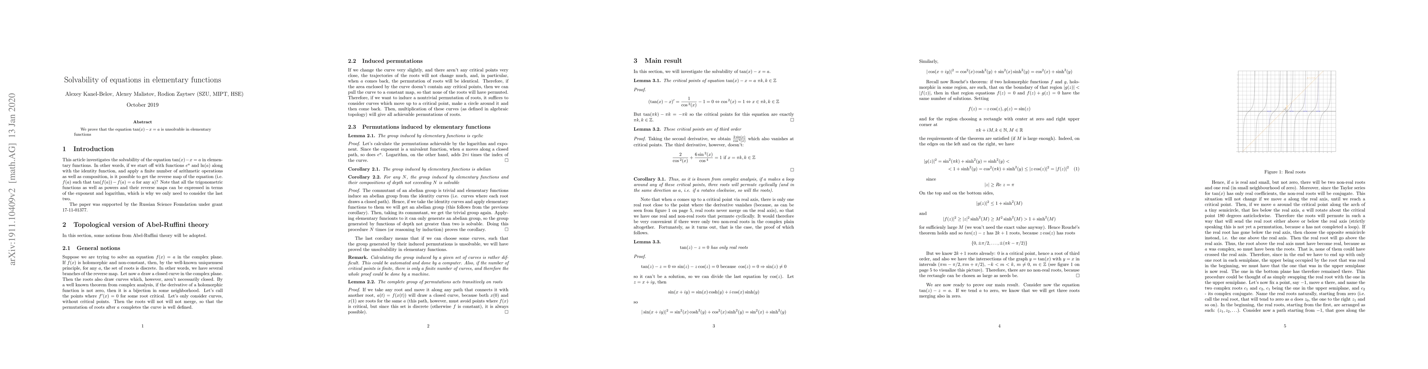 We prove that the equation $\tan(x) - x = a$ is unsolvable in elementary functions