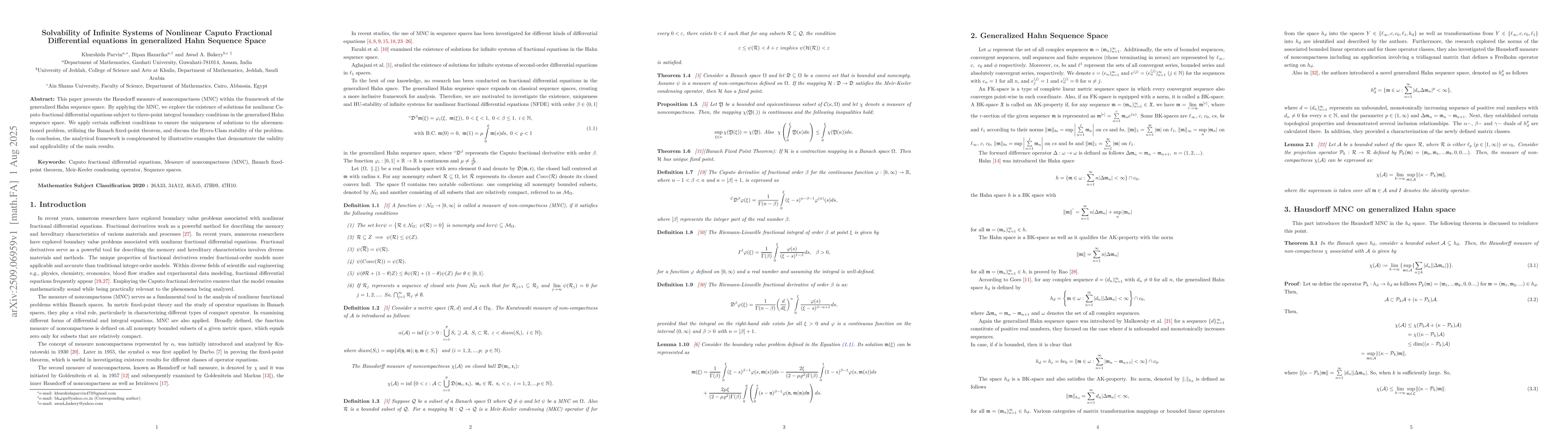 This paper presents the Hausdorff measure of noncompactness (MNC) within the framework of the generalized Hahn sequence space. By applying the MNC, we explore the existence of solutions for nonlinear Caputo fractional differential equations subject to three-point integral boundary conditions in the generalized Hahn sequence space. We apply certain sufficient conditions to ensure the uniqueness of solutions to the aforementioned problem, utilizing the Banach fixed-point theorem, and discuss the Hyers-Ulam stability of the problem. In conclusion, the analytical framework is complemented by illustrative examples that demonstrate the validity and applicability of the main results.