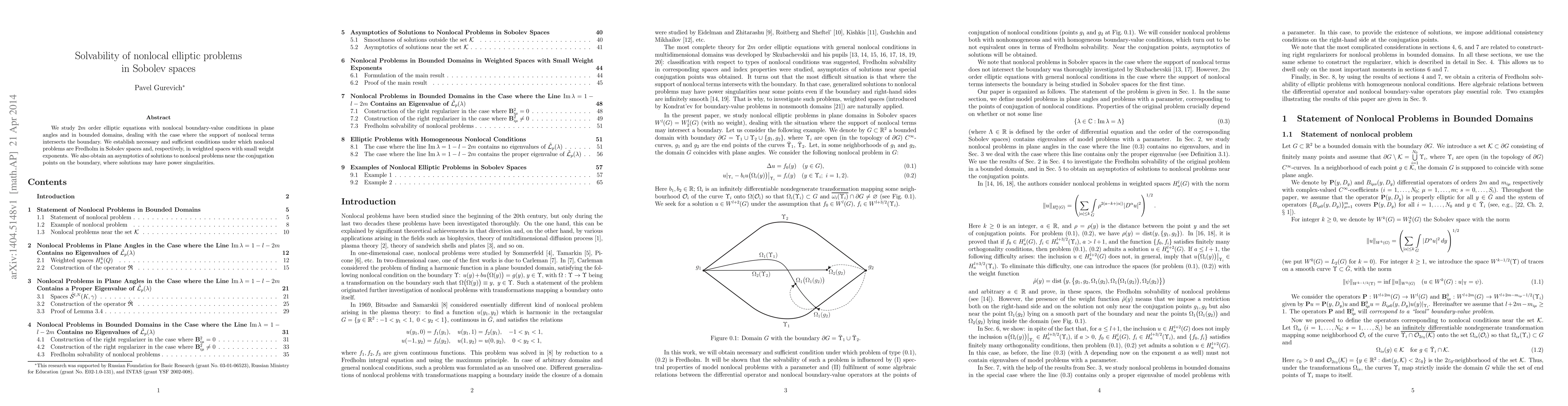 This paper investigates the solvability of $2m$-order elliptic equations with nonlocal boundary conditions in plane angles and bounded domains, establishing necessary and sufficient conditions for Fredholmness in Sobolev and weighted spaces. It also provides an asymptotic analysis of solutions near boundary conjugation points where singularities may occur.
