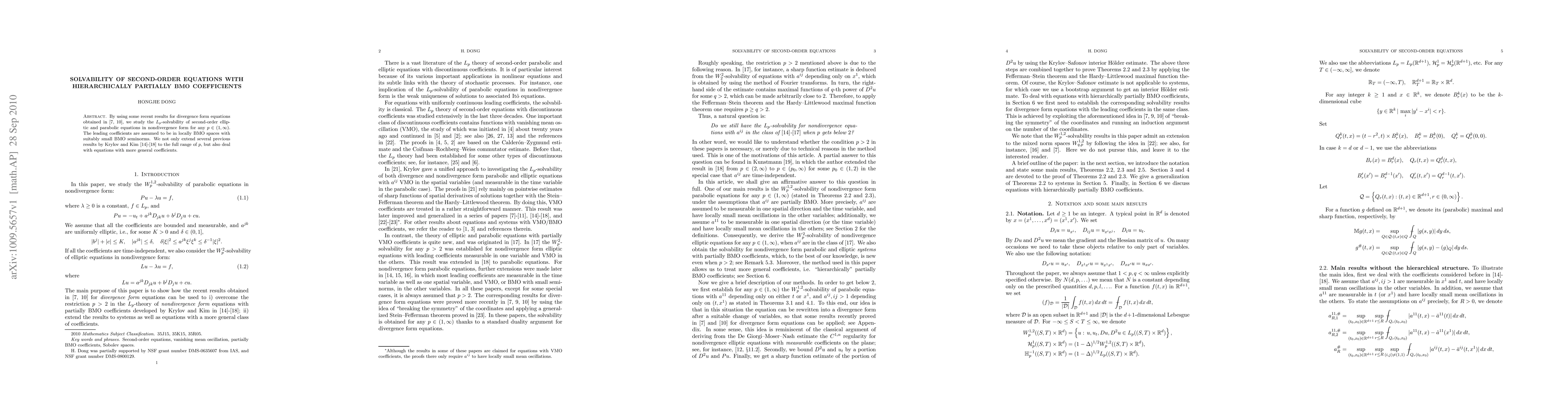 Summary: This paper extends $L_p$-solvability results for second-order elliptic and parabolic equations to a broader range of $p$, considering coefficients in locally BMO spaces with small seminorms, thereby generalizing prior work by Krylov and Kim.