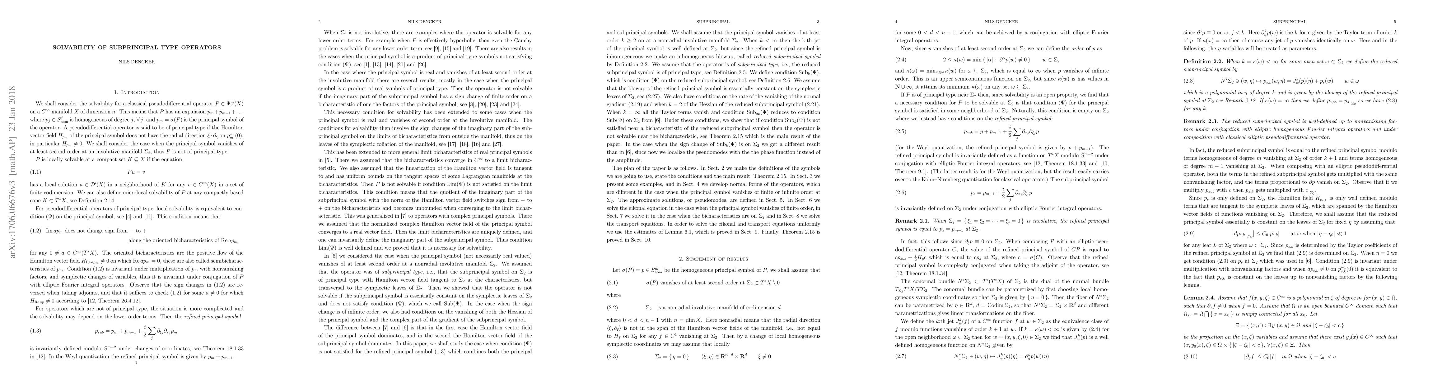 In this paper we consider the solvability of pseudodifferential operators in the case when the principal symbol vanishes of order $k \ge 2 $ at a nonradial involutive manifold $\Sigma_2$. We shall assume that the operator is of subprincipal type, which means that the $ k$:th inhomogeneous blowup at $\Sigma_2$ of the refined principal symbol is of principal type with Hamilton vector field parallel to the base $\Sigma_2$, but transversal to the symplectic leaves of $\Sigma_2$ at the characteristics. When $k = \infty $ this blowup reduces to the subprincipal symbol. We also assume that the blowup is essentially constant on the leaves of $\Sigma_2$, and does not satisfying the Nirenberg-Treves condition (${\Psi}$). We also have conditions on the vanishing of the normal gradient and the Hessian of the blowup at the characteristics. Under these conditions, we show that $P$ is not solvable.