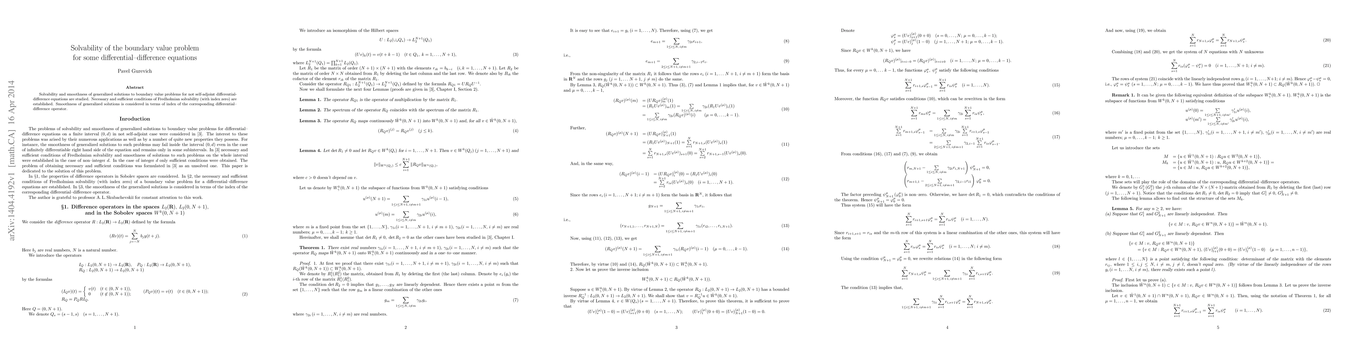 This paper investigates the solvability and smoothness of generalized solutions for boundary value problems of non-self-adjoint differential-difference equations. It establishes necessary and sufficient Fredholmian solvability conditions with index zero and examines the smoothness of solutions in relation to the operator's index.