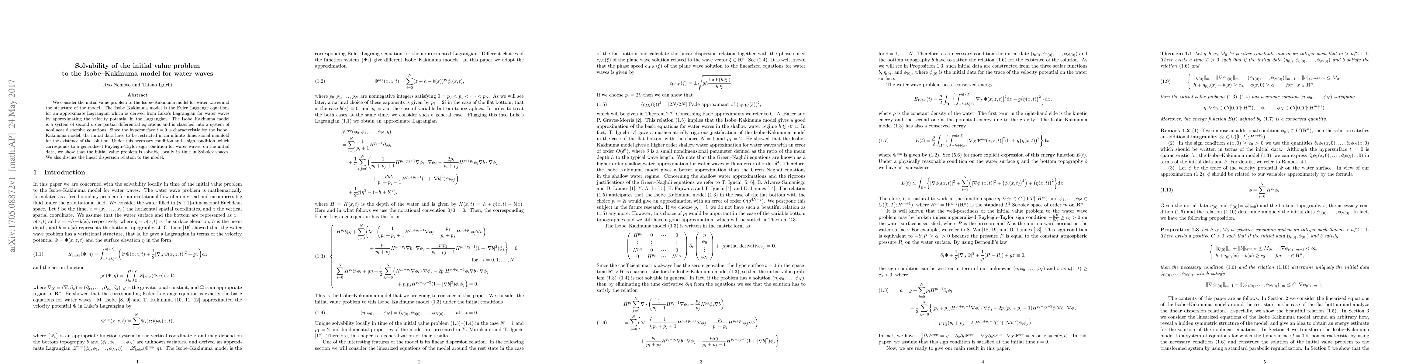 This paper investigates the solvability of the initial value problem for the Isobe-Kakinuma model, a system of nonlinear dispersive equations derived from Luke's Lagrangian for water waves. The authors establish local existence of solutions under specific conditions on the initial data and discuss the linear dispersion relation.