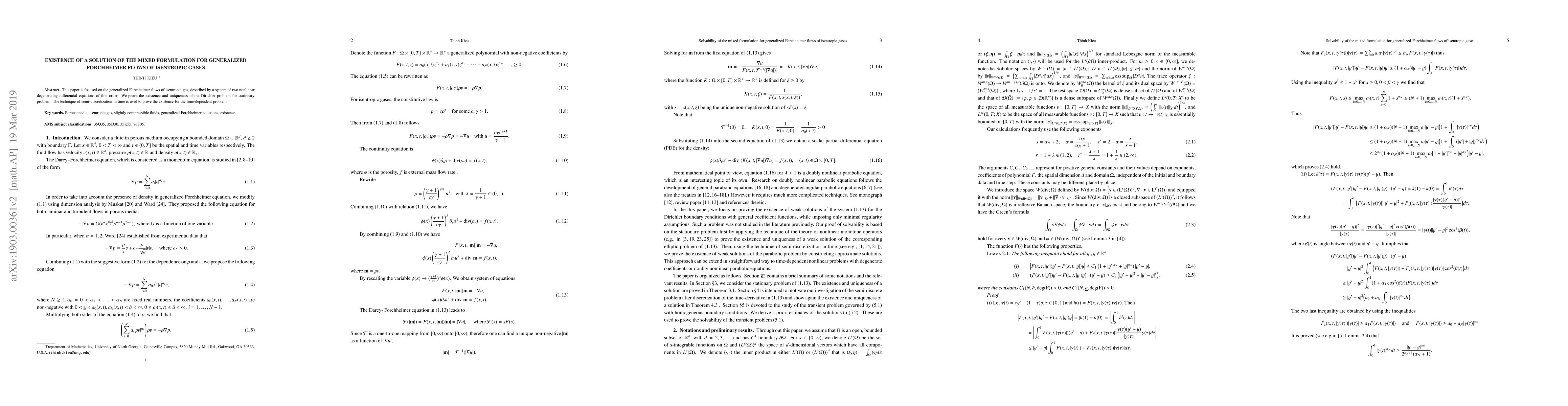 This paper proves the existence and uniqueness of solutions for the Dirichlet problem of stationary generalized Forchheimer flows of isentropic gases. It also employs semi-discretization in time to establish the existence for the time-dependent problem.