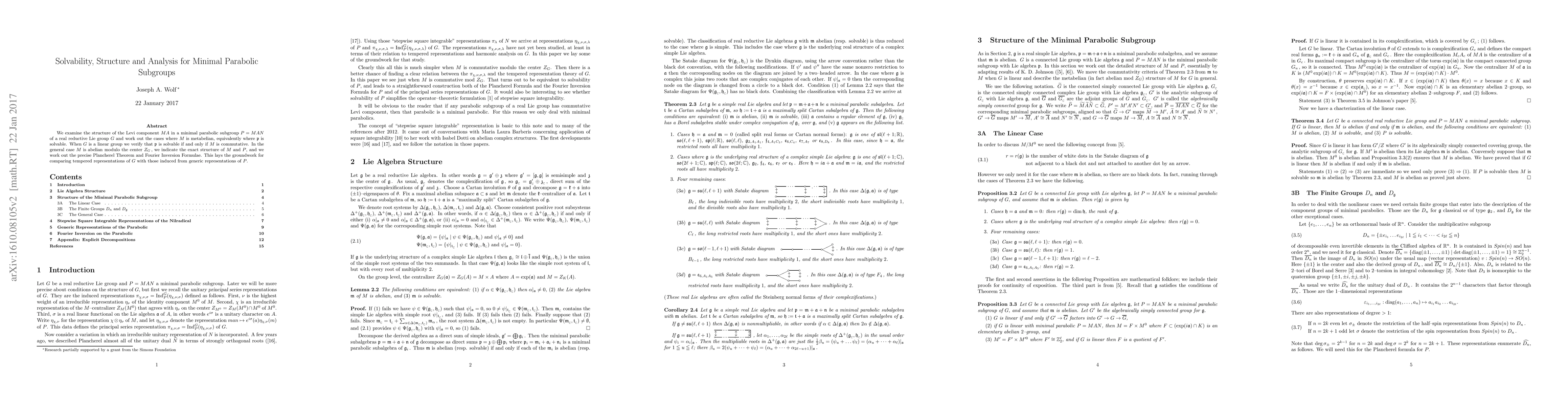 We examine the structure of the Levi component $MA$ in a minimal parabolic subgroup $P = MAN$ of a real reductive Lie group $G$ and work out the cases where $M$ is metabelian, equivalently where $\mathfrak{p}$ is solvable. When $G$ is a linear group we verify that $\mathfrak{p}$ is solvable if and only if $M$ is commutative. In the general case $M$ is abelian modulo the center $Z_G$, we indicate the exact structure of $M$ and $P$, and we work out the precise Plancherel Theorem and Fourier Inversion Formulae. This lays the groundwork for comparing tempered representations of $G$ with those induced from generic representations of $P$.