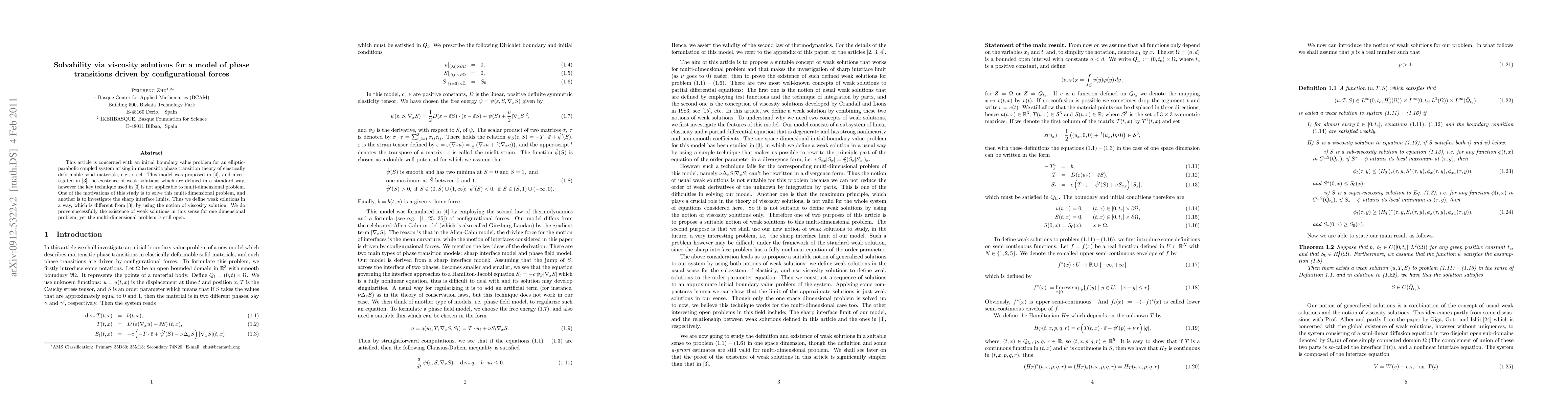 This paper addresses an initial boundary value problem for a system of partial differential equations modeling martensitic phase transitions in elastically deformable solids. The authors redefine weak solutions using viscosity solutions to tackle the multi-dimensional problem, proving existence in one dimension while leaving the multi-dimensional case unresolved.