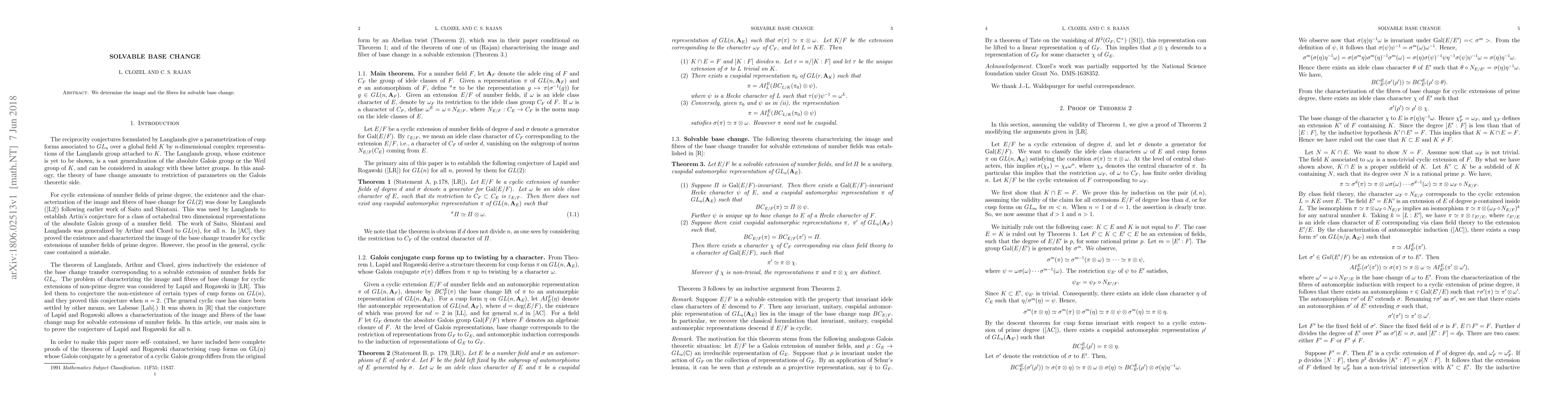 Summary: This paper investigates the image and structure of fibres resulting from solvable base change in mathematical contexts, offering insights into the underlying behavior of such transformations.