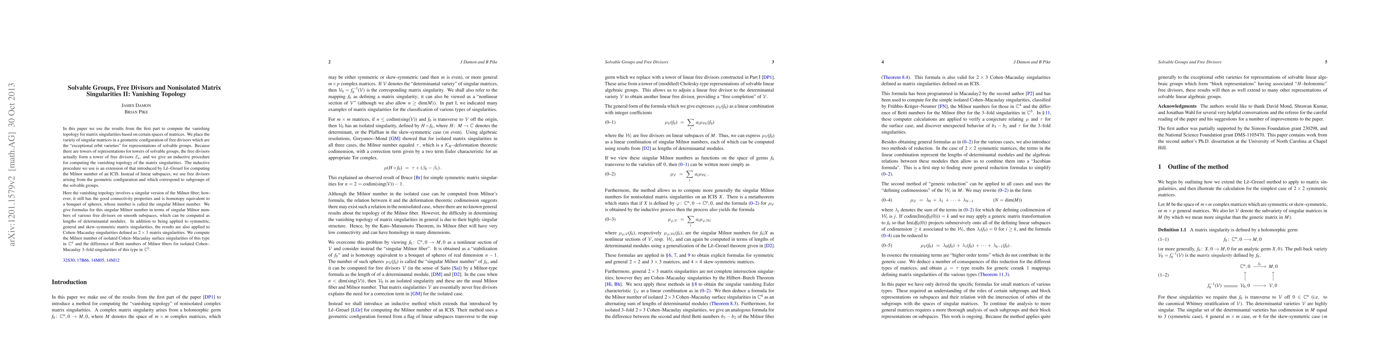 This paper computes the vanishing topology for matrix singularities using free divisors and solvable groups, establishing an inductive procedure for determining the singular Milnor number. It applies these methods to symmetric, general, and skew-symmetric matrix singularities, as well as to Cohen--Macaulay singularities defined by 2 x 3 matrix singularities, computing Milnor numbers and Betti numbers for these cases.