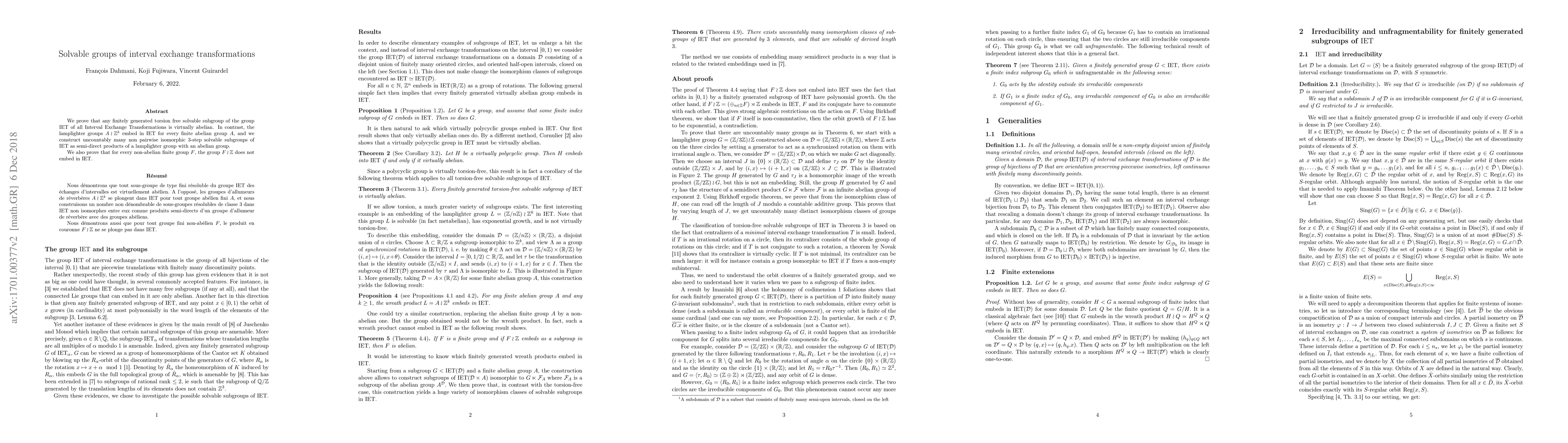 Summary: This paper proves that any finitely generated torsion-free solvable subgroup of interval exchange transformations (IET) is virtually abelian. It also shows that lamplighter groups embed in IET and constructs uncountably many non-isomorphic 3-step solvable subgroups of IET. Additionally, it establishes that non-abelian finite groups do not embed in IET.