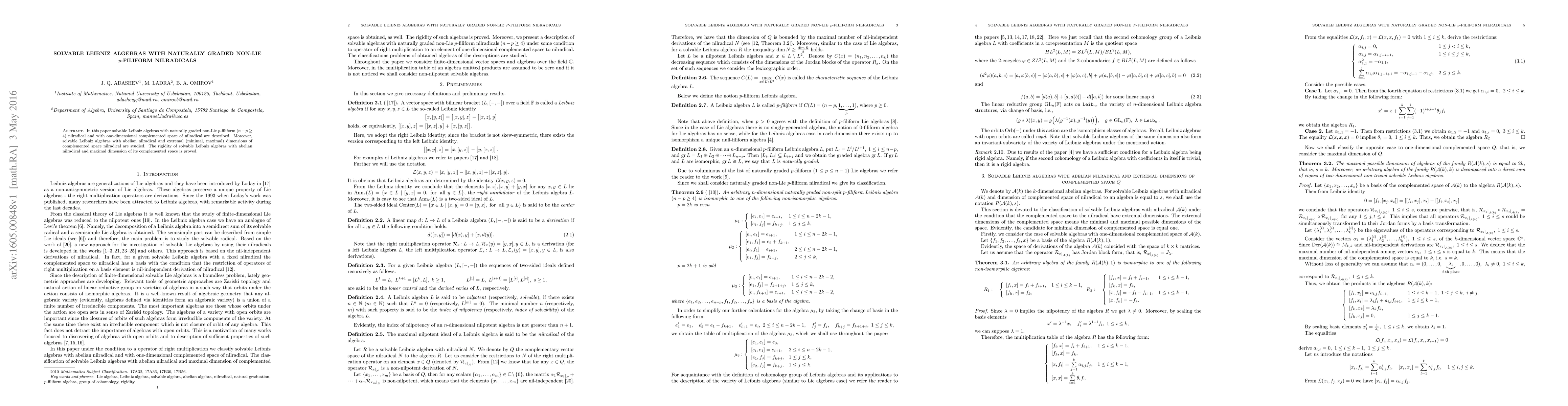 Summary: This paper investigates solvable Leibniz algebras featuring naturally graded non-Lie $p$-filiform nilradicals, focusing on those with one-dimensional complemented spaces and examining the rigidity of structures with abelian nilradicals and maximal dimensions of their complemented spaces.