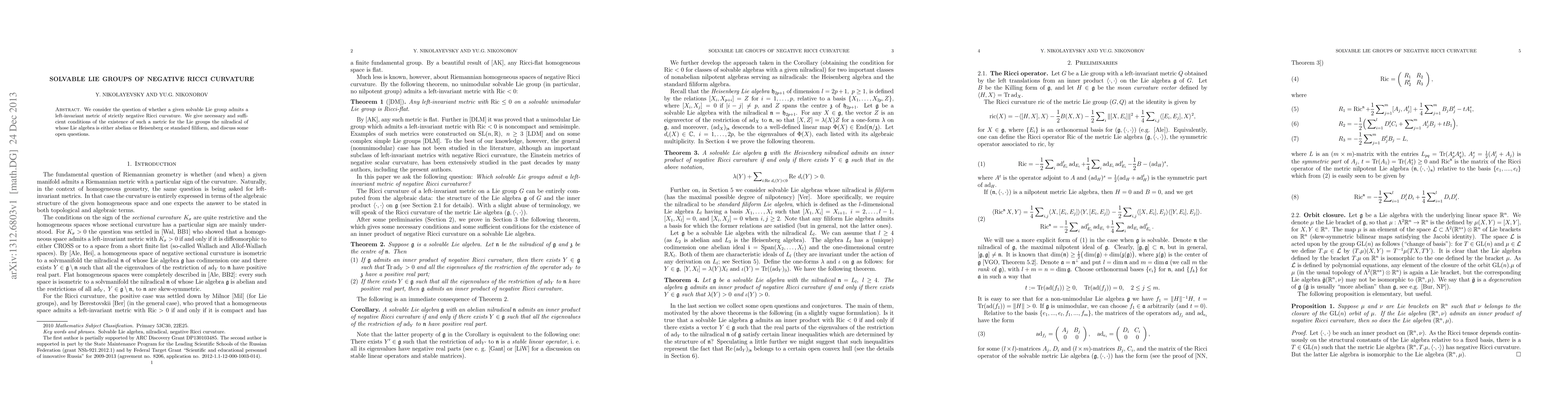 We consider the question of whether a given solvable Lie group admits a left-invariant metric of strictly negative Ricci curvature. We give necessary and sufficient conditions of the existence of such a metric for the Lie groups the nilradical of whose Lie algebra is either abelian or Heisenberg or standard filiform, and discuss some open questions.