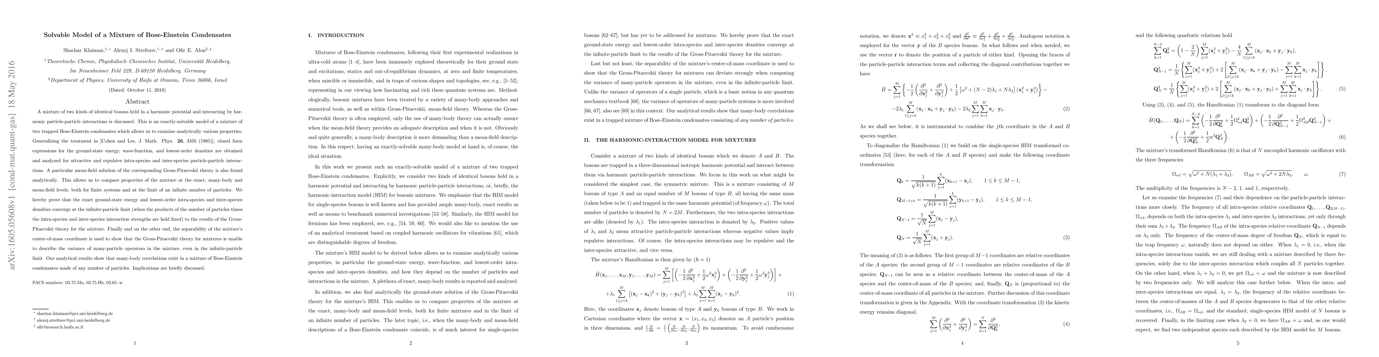 This paper presents an exactly-solvable model of a mixture of two trapped Bose-Einstein condensates, deriving closed-form expressions for ground-state energy, wave-function, and densities. It demonstrates convergence of exact results to Gross-Pitaevskii theory in the infinite-particle limit, while highlighting limitations of the mean-field approach in capturing many-body correlations.