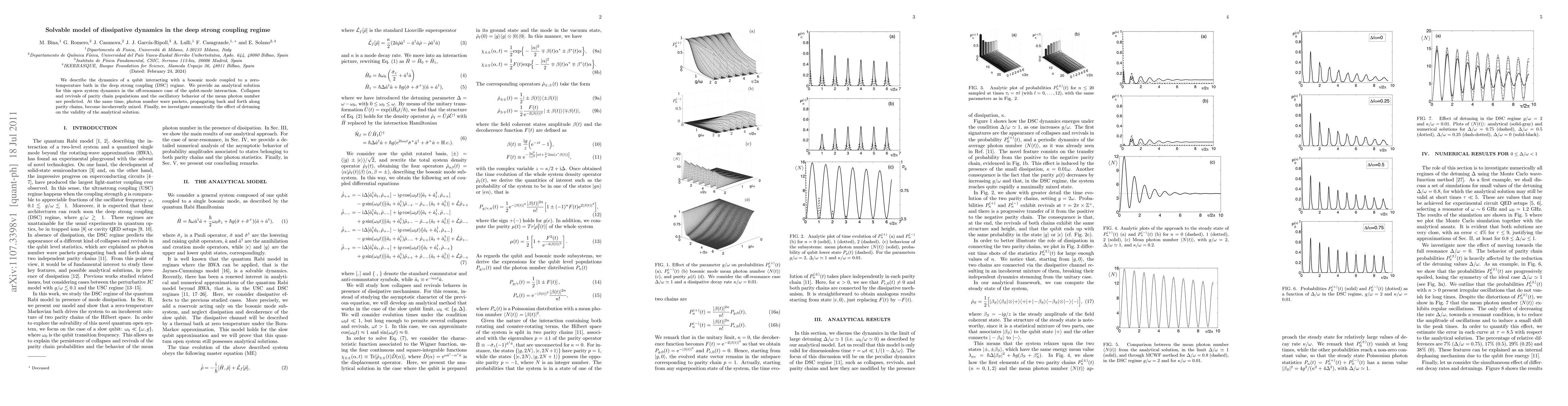 Researchers describe the dynamics of a qubit interacting with a bosonic mode in the deep strong coupling regime, predicting collapses and revivals of parity chain populations and oscillatory behavior of photon number.