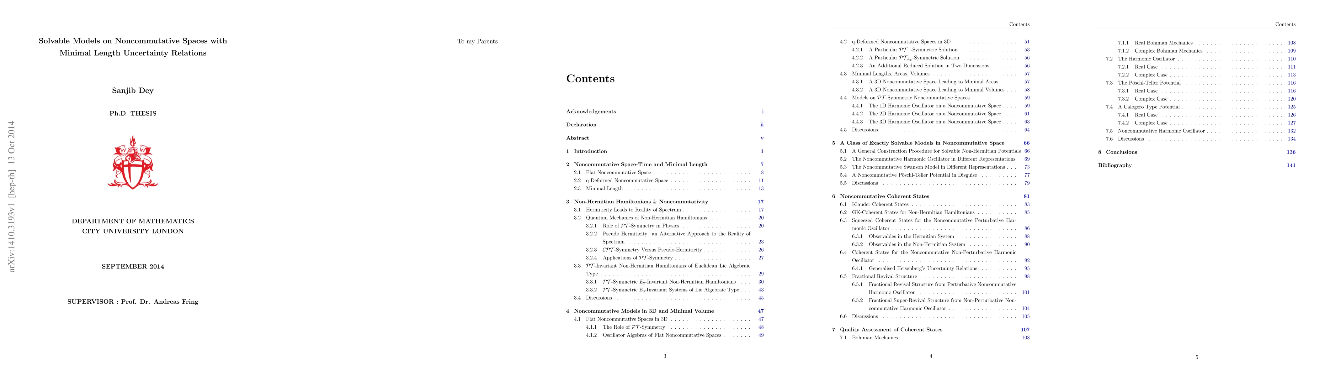 Our main focus is to explore different models in noncommutative spaces in higher dimensions. We provide a procedure to relate a three dimensional q-deformed oscillator algebra to the corresponding algebra satisfied by canonical variables describing non-commutative spaces. The representations for the corresponding operators obey algebras whose uncertainty relations lead to minimal length, areas and volumes in phase space, which are in principle natural candidates of many different approaches of quantum gravity. We study some explicit models on these types of noncommutative spaces, first by utilising the perturbation theory, later in an exact manner. In many cases the operators are not Hermitian, therefore we use PT -symmetry and pseudo-Hermiticity property, wherever applicable, to make them self-consistent. Apart from building mathematical models, we focus on the physical implications of noncommutative theories too. We construct Klauder coherent states for the perturbative and nonperturbative noncommutative harmonic oscillator associated with uncertainty relations implying minimal lengths. In both cases, the uncertainty relations for the constructed states are shown to be saturated and thus imply to the squeezed coherent states. They are also shown to satisfy the Ehrenfest theorem dictating the classical like nature of the coherent wavepacket. The quality of those states are further underpinned by the fractional revival structure. More investigations into the comparison are carried out by a qualitative comparison between the dynamics of the classical particle and that of the coherent states based on numerical techniques. The qualitative behaviour is found to be governed by the Mandel parameter determining the regime in which the wavefunctions evolve as soliton like structures.