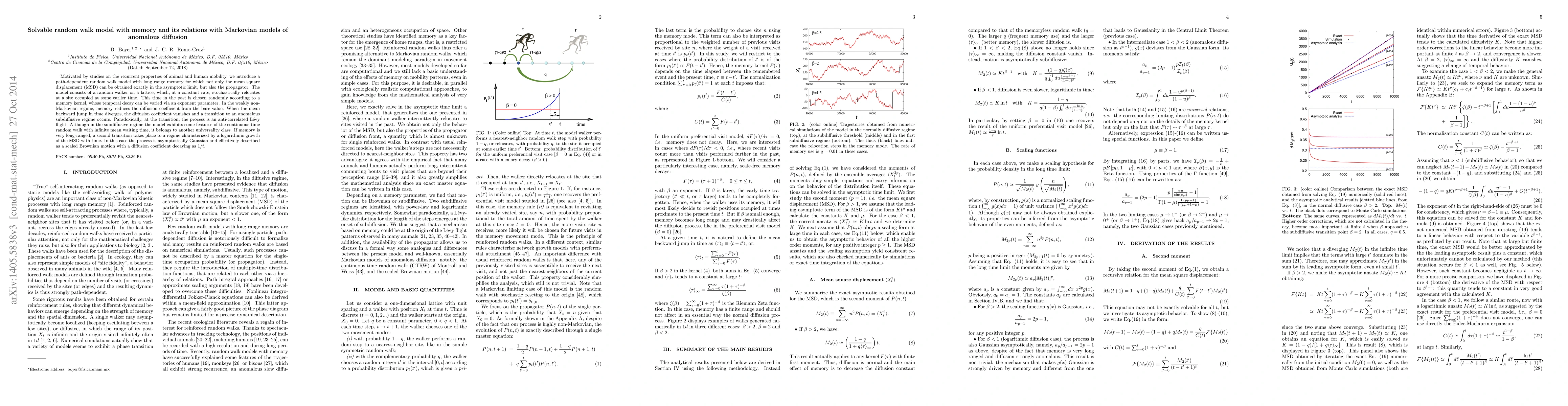 This paper introduces a solvable random walk model with long-range memory that transitions between normal and anomalous diffusion regimes. The model exhibits a transition to subdiffusion via anti-correlation and further to a logarithmic growth regime, characterized by Gaussian behavior and a 1/t decay in diffusion coefficient.