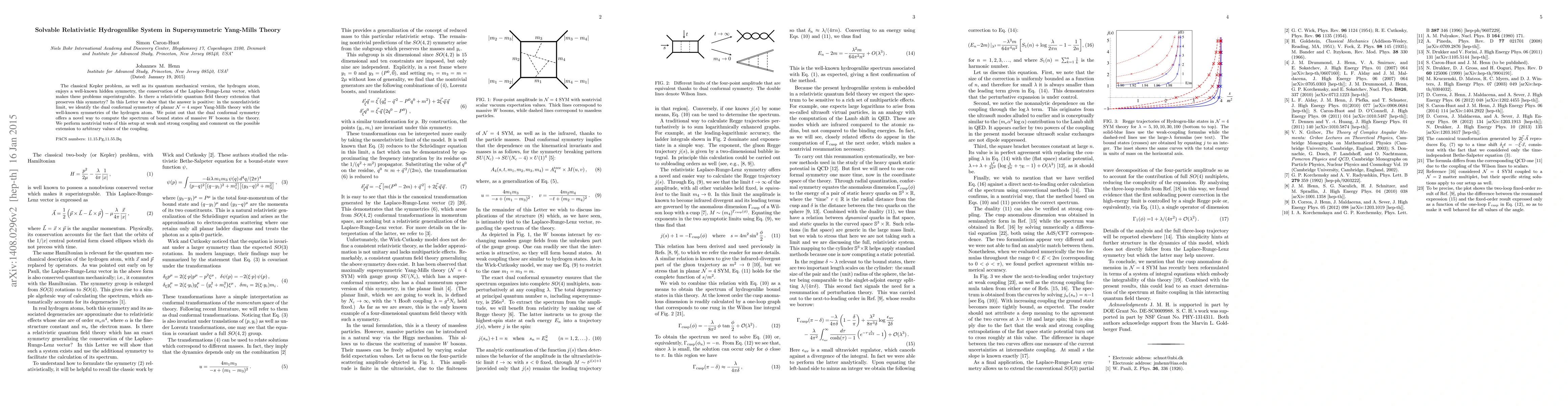 The classical Kepler problem, as well as its quantum mechanical version, the Hydrogen atom, enjoy a well-known hidden symmetry, the conservation of the Laplace-Runge-Lenz vector, which makes these problems superintegrable. Is there a relativistic quantum field theory extension that preserves this symmetry? In this Letter we show that the answer is positive: in the non-relativistic limit, we identify the dual conformal symmetry of planar $\mathcal{N}=4$ super Yang-Mills with the well-known symmetries of the Hydrogen atom. We point out that the dual conformal symmetry offers a novel way to compute the spectrum of bound states of massive $W$ bosons in the theory. We perform nontrivial tests of this setup at weak and strong coupling, and comment on the possible extension to arbitrary values of the coupling.