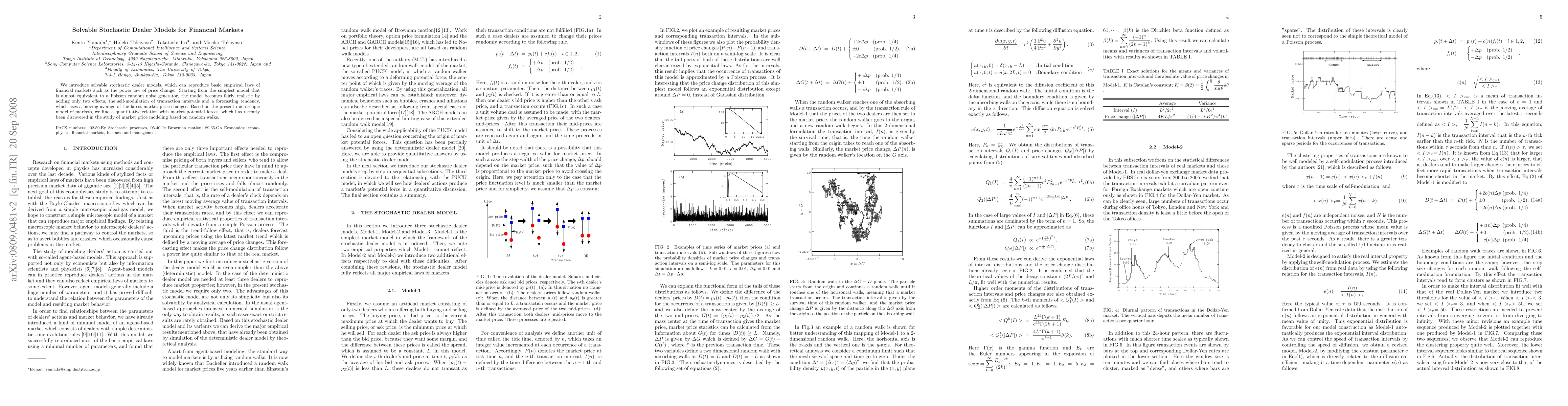 We introduce solvable stochastic dealer models, which can reproduce basic empirical laws of financial markets such as the power law of price change. Starting from the simplest model that is almost equivalent to a Poisson random noise generator, the model becomes fairly realistic by adding only two effects, the self-modulation of transaction intervals and a forecasting tendency, which uses a moving average of the latest market price changes. Based on the present microscopic model of markets, we find a quantitative relation with market potential forces, which has recently been discovered in the study of market price modeling based on random walks.