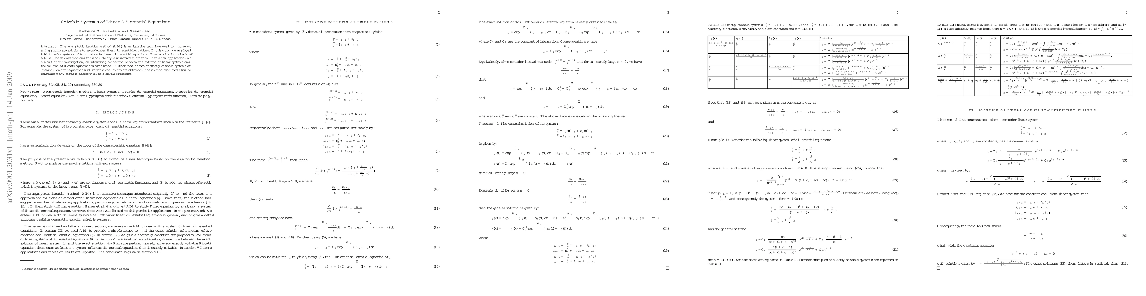 The asymptotic iteration method (AIM) is an iterative technique used to find exact and approximate solutions to second-order linear differential equations. In this work, we employed AIM to solve systems of two first-order linear differential equations. The termination criteria of AIM will be re-examined and the whole theory is re-worked in order to fit this new application. As a result of our investigation, an interesting connection between the solution of linear systems and the solution of Riccati equations is established. Further, new classes of exactly solvable systems of linear differential equations with variable coefficients are obtained. The method discussed allow to construct many solvable classes through a simple procedure.