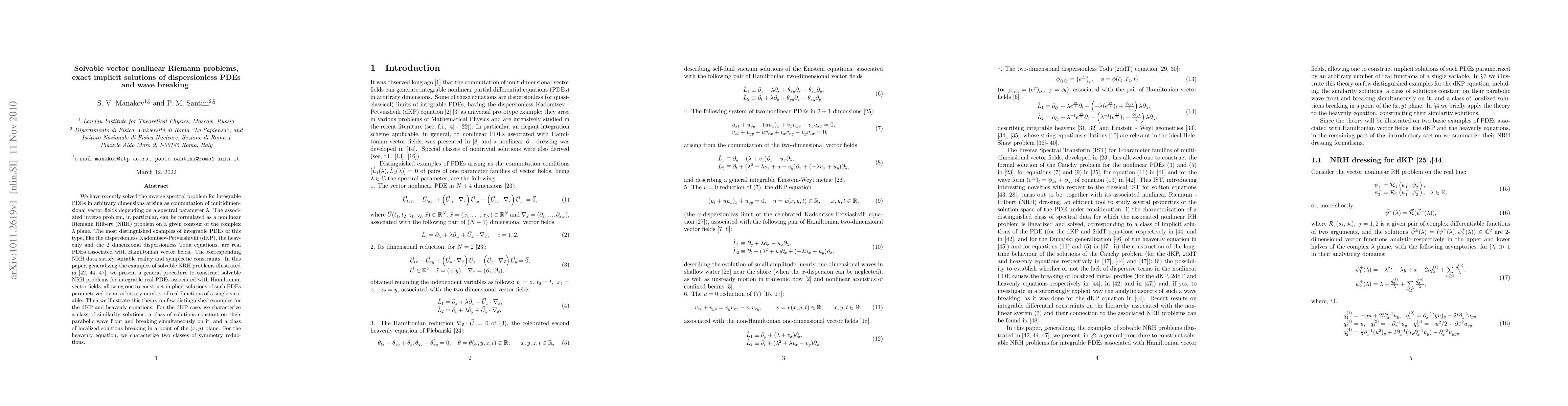 This paper presents a general method for solving solvable nonlinear Riemann-Hilbert problems for integrable real PDEs associated with Hamiltonian vector fields, constructing implicit solutions parametrized by real functions. It applies this theory to the dispersionless Kadomtsev-Petviashivili and heavenly equations, characterizing various types of wave breaking solutions.