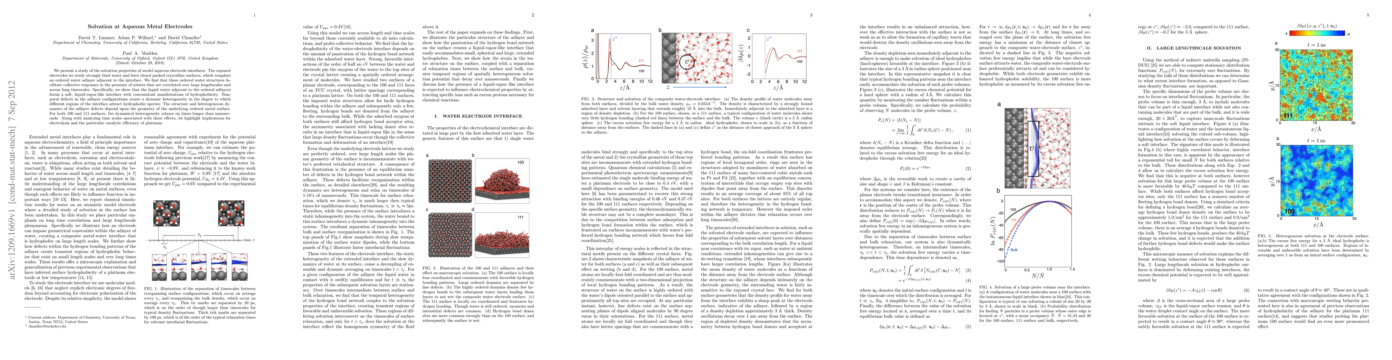 We present a study of the solvation properties of model aqueous electrode interfaces. The exposed electrodes we study strongly bind water and have closed packed crystalline surfaces, which template an ordered water adlayer adjacent to the interface. We find that these ordered water structures facilitate collective responses in the presence of solutes that are correlated over large lengthscales and across long timescales. Specifically, we show that the liquid water adjacent to the ordered adlayers forms a soft, liquid-vapor-like interface with concomitant manifestations of hydrophobicity. Temporal defects in the adlayer configurations create a dynamic heterogeneity in the degree to which different regions of the interface attract hydrophobic species. The structure and heterogeneous dynamics of the adlayer defects depend upon the geometry of the underlying ordered metal surface. For both 100 and 111 surfaces, the dynamical heterogeneity relaxes on times longer than nanoseconds. Along with analyzing time scales associated with these effects, we highlight implications for electrolysis and the particular catalytic efficiency of platinum.