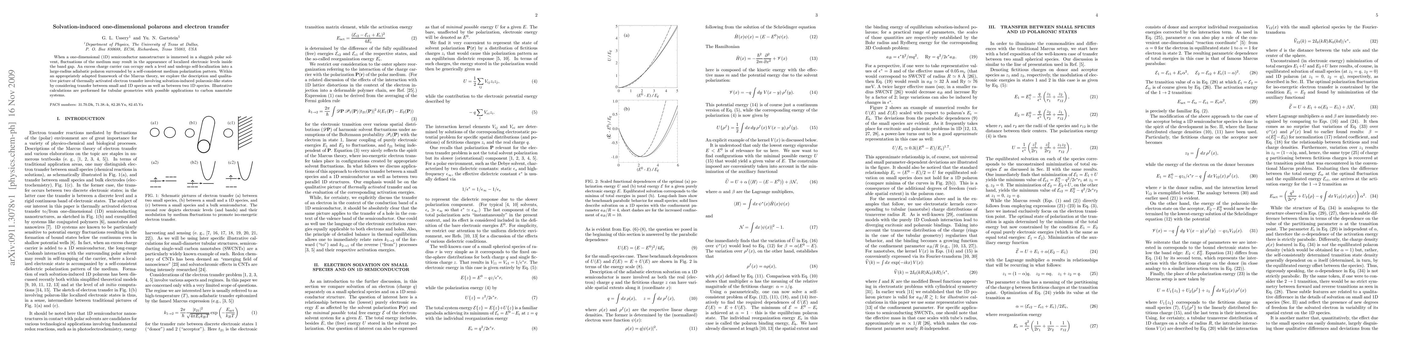 Researchers explore how a 1D semiconductor nanostructure can form localized electronic levels in a sluggish polar solvent, leading to self-localization into large-radius adiabatic polaron states that facilitate thermally activated electron transfer.