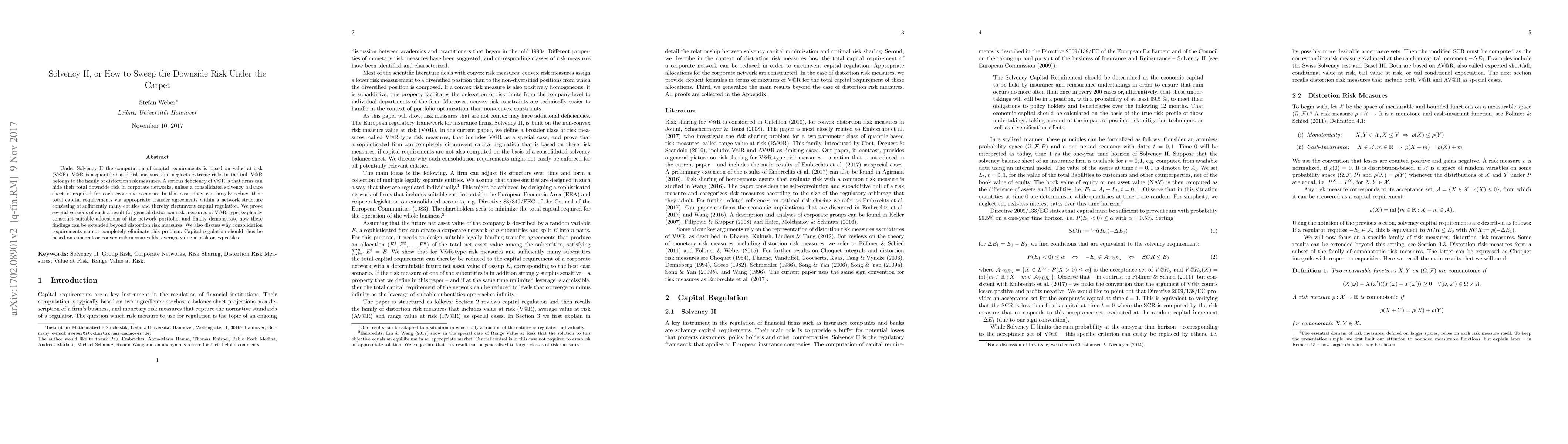 This paper examines the shortcomings of Solvency II's value at risk (V@R) in capturing total downside risk, showing how firms can minimize capital requirements through network structures. It proposes that coherent or convex risk measures are needed for better capital regulation.