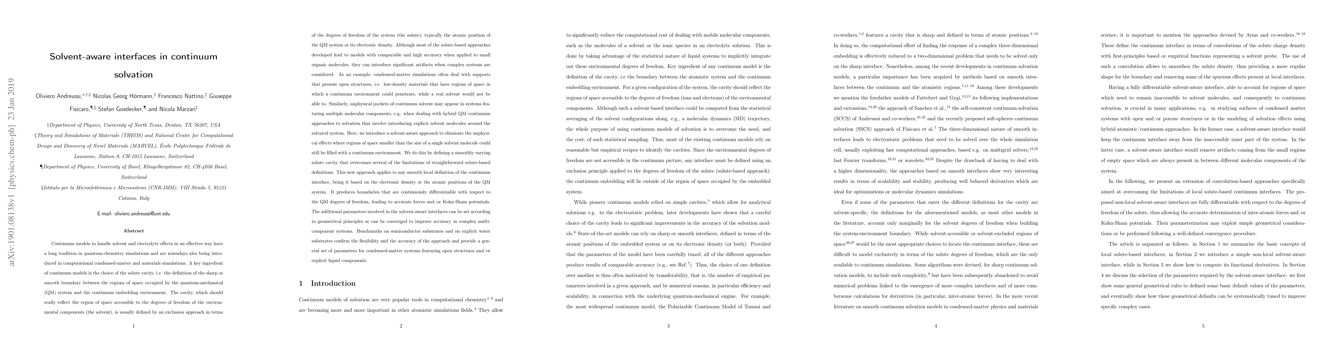 This paper introduces a solvent-aware approach to continuum solvation models that defines a smoothly varying solute cavity to eliminate unphysical solvent pockets in complex systems. The new method produces continuously differentiable boundaries, leading to accurate forces and potentials, and is validated for semiconductor and explicit water substrates.