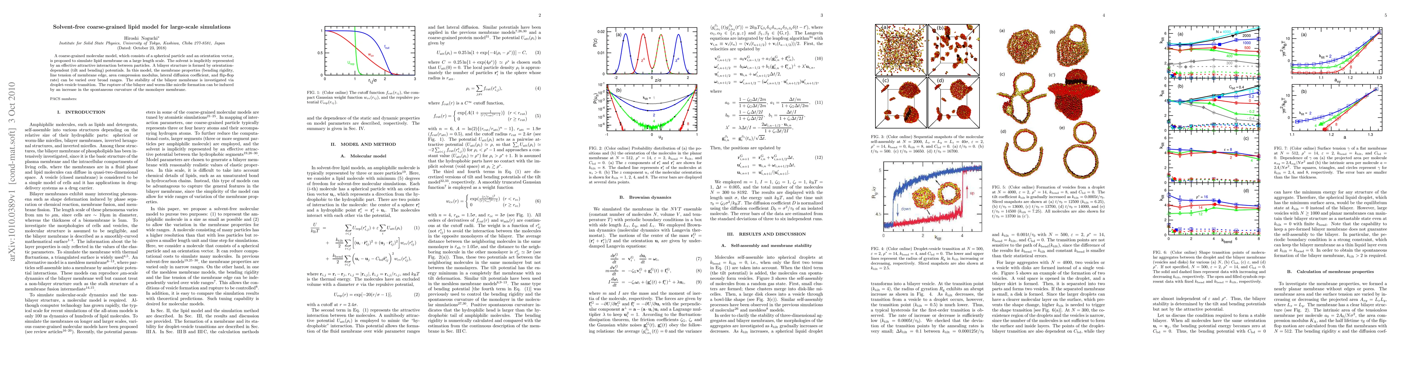 This paper proposes a solvent-free coarse-grained lipid model for large-scale simulations, featuring spherical particles and orientation vectors to represent lipid membranes. The model implicitly accounts for solvent effects and allows for the investigation of membrane properties and bilayer stability through various interactions.