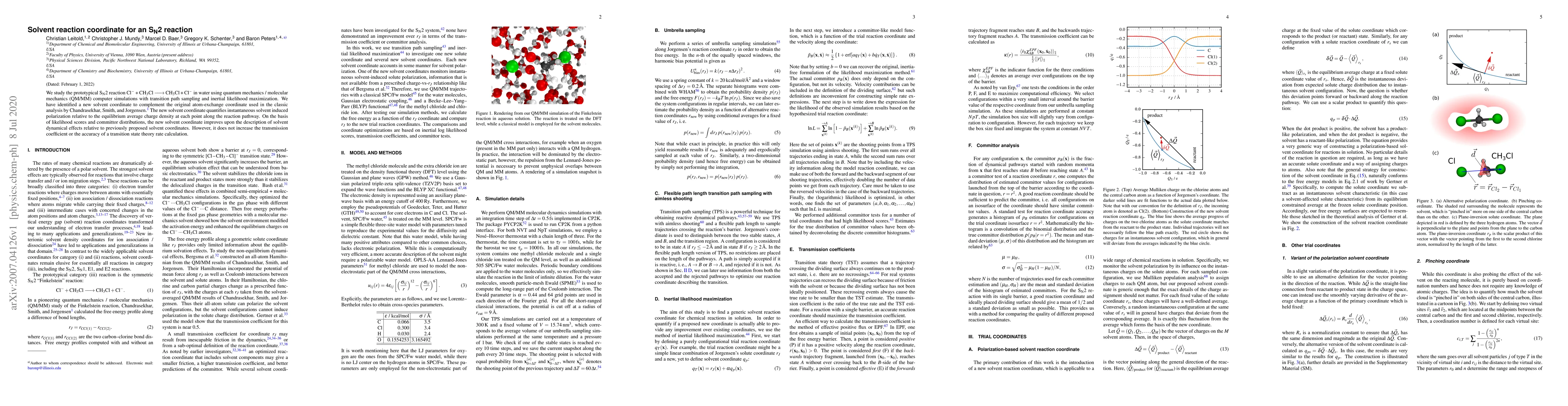 Researchers used quantum mechanics simulations to study an S$_N$2 reaction in water, identifying a new solvent coordinate that better describes solvent-induced polarization, but did not improve transition state theory rate calculations.
