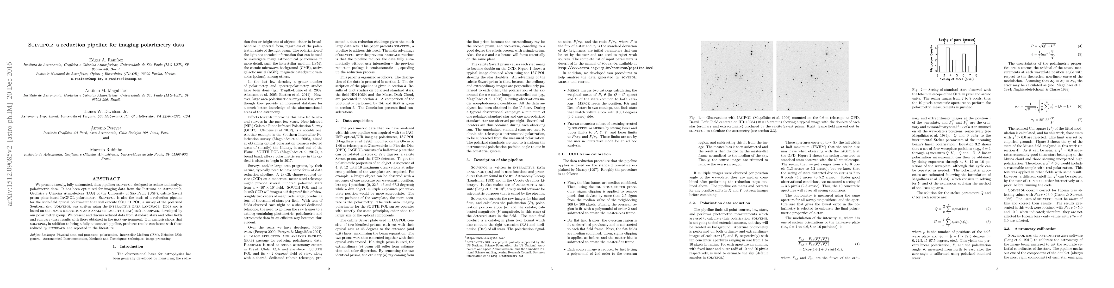 Solvepol is an automated data pipeline for reducing and analyzing imaging polarimetry data, specifically optimized for the IAGPOL polarimeter at the University of Sao Paulo. It produces results consistent with traditional IRAF methods, facilitating the SOUTH POL survey of the polarized Southern sky.