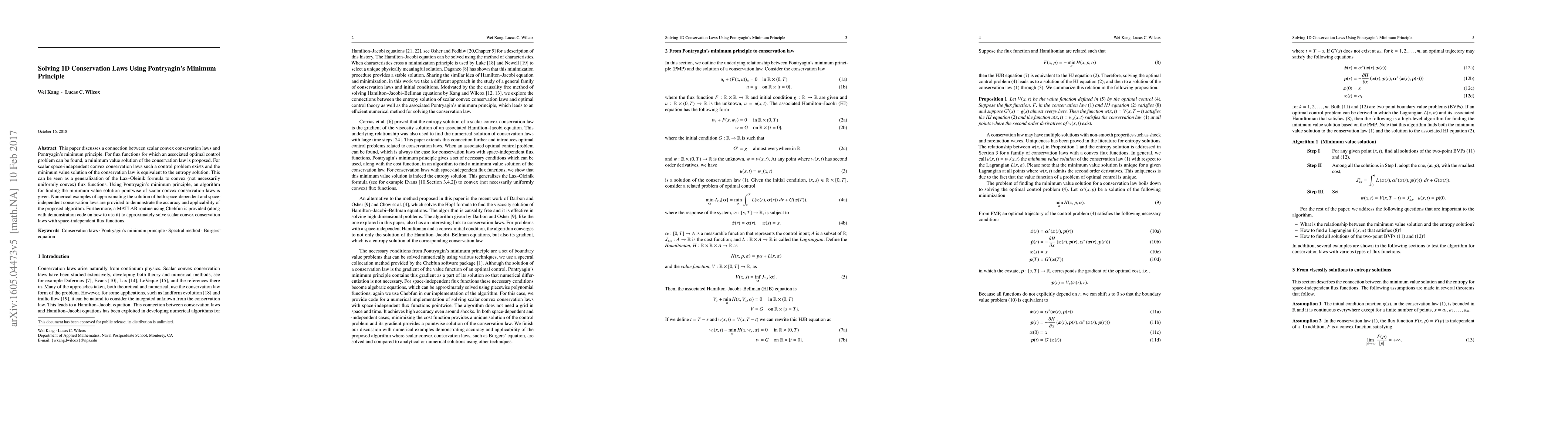 This paper links scalar convex conservation laws to Pontryagin's minimum principle, proposing a minimum value solution approach that generalizes the Lax-Oleinik formula. An algorithm using this principle is developed for finding minimum value solutions pointwise, with numerical examples and a MATLAB routine using Chebfun to demonstrate its effectiveness.
