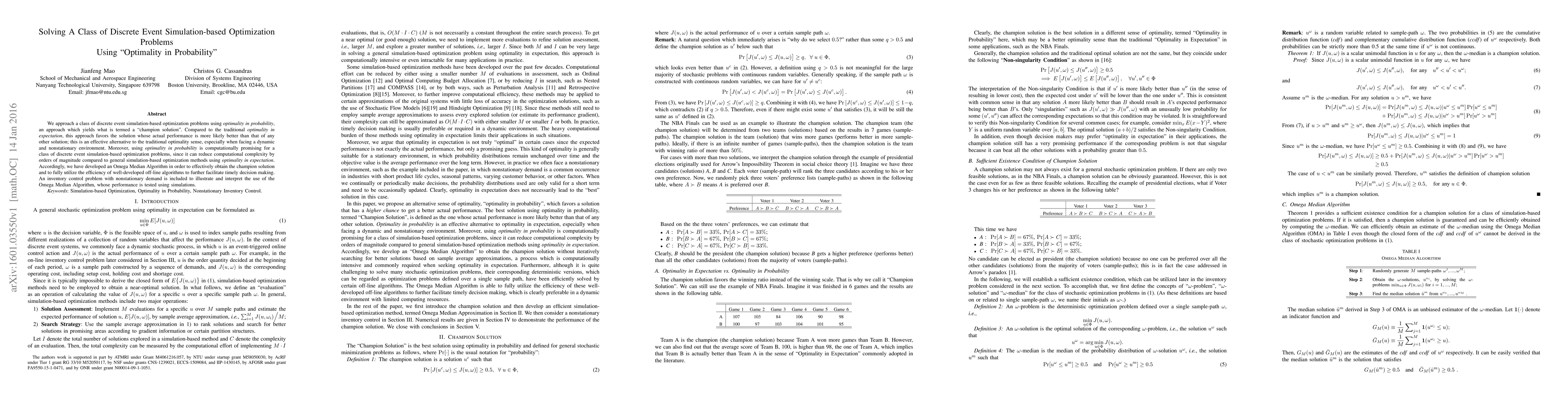 Researchers developed an algorithm called Omega Median Algorithm to solve discrete event simulation-based optimization problems using optimality in probability, reducing computational complexity by orders of magnitude.