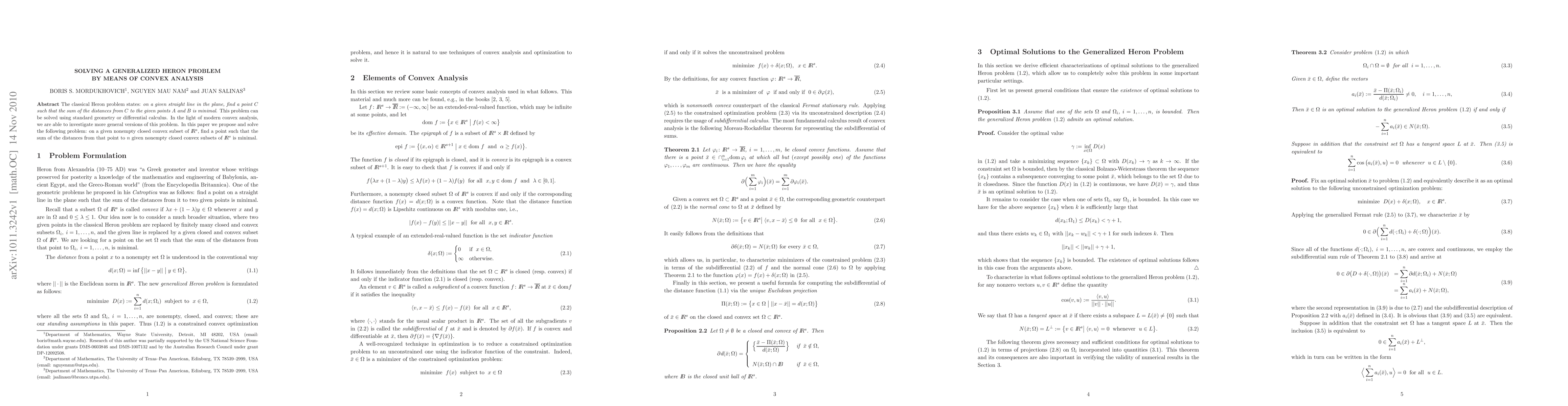 This paper addresses a generalized version of the Heron problem using convex analysis, proposing a method to find a point on a nonempty closed convex subset of $\R^s$ that minimizes the sum of distances to $n$ given nonempty closed convex subsets. The solution leverages principles from convex analysis.