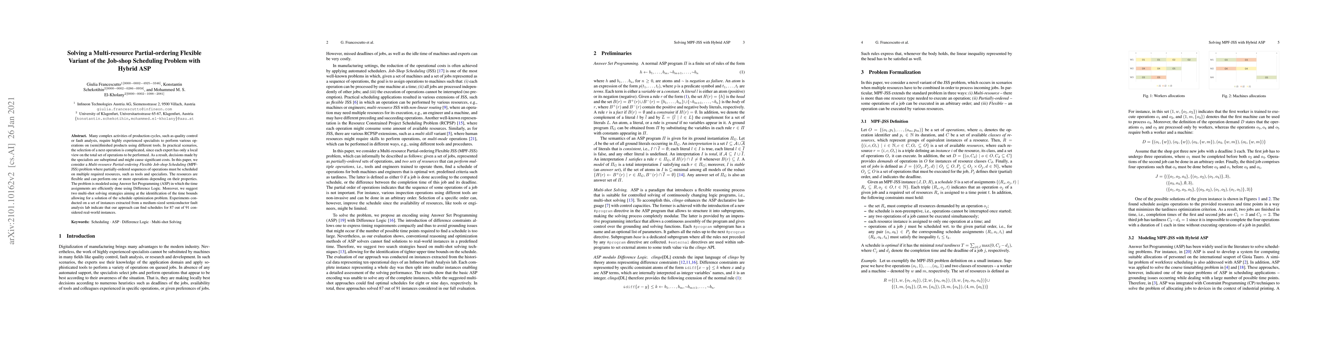 The paper introduces a hybrid ASP approach with Difference Logic for modeling and solving the MPF-JSS problem, along with two multi-shot solving strategies for tardiness bound approximation.