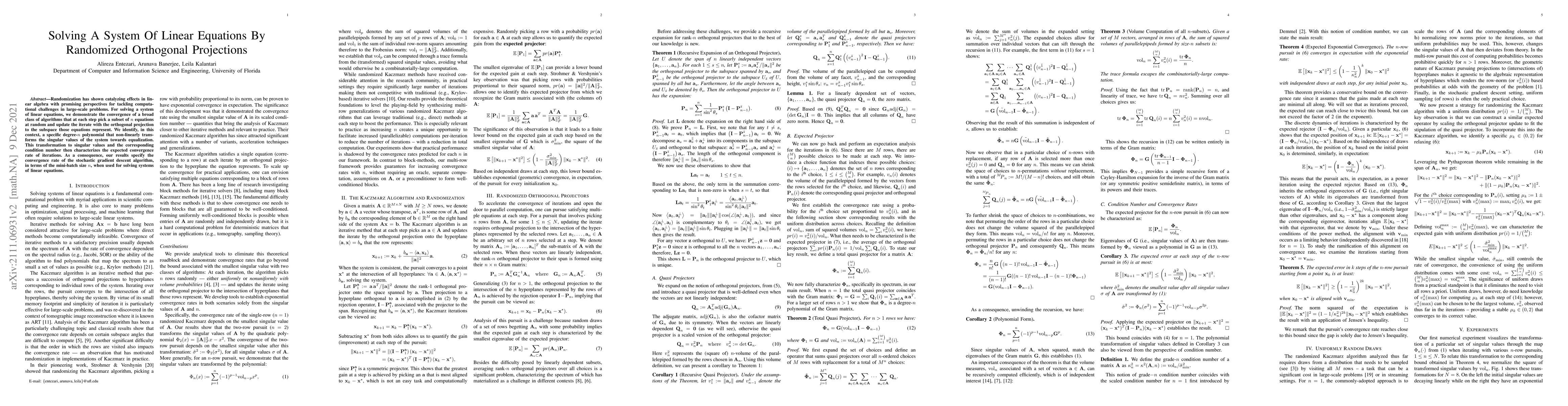 Researchers propose a new method for solving systems of linear equations using randomized orthogonal projections, which can lead to faster convergence rates compared to traditional methods.