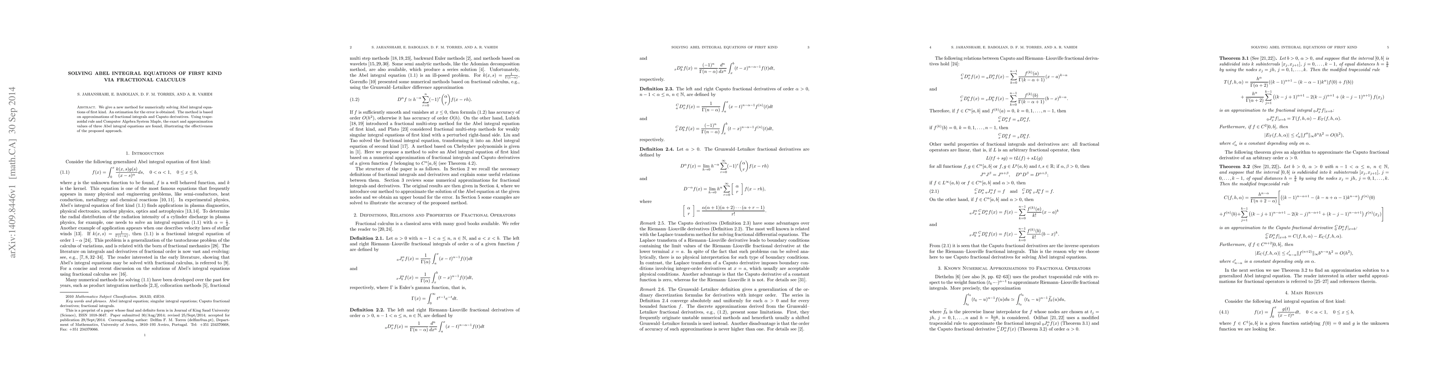 The research presents a new method for numerically solving Abel integral equations of the first kind using approximations of fractional integrals and Caputo derivatives, employing the trapezoidal rule and Maple for computations.