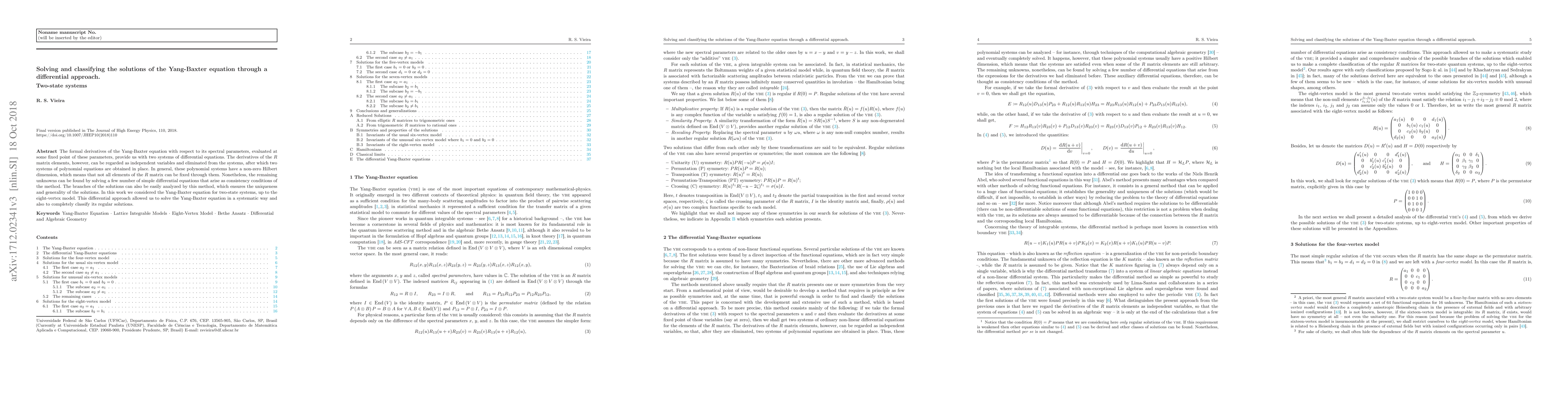 The formal derivatives of the Yang-Baxter equation with respect to its spectral parameters, evaluated at some fixed point of these parameters, provide us with two systems of differential equations. The derivatives of the $R$ matrix elements, however, can be regarded as independent variables and eliminated from the systems, after which two systems of polynomial equations are obtained in place. In general, these polynomial systems have a non-zero Hilbert dimension, which means that not all elements of the $R$ matrix can be fixed through them. Nonetheless, the remaining unknowns can be found by solving a few number of simple differential equations that arise as consistency conditions of the method. The branches of the solutions can also be easily analyzed by this method, which ensures the uniqueness and generality of the solutions. In this work we considered the Yang-Baxter equation for two-state systems, up to the eight-vertex model. This differential approach allowed us to solve the Yang-Baxter equation in a systematic way and also to completely classify its regular solutions.