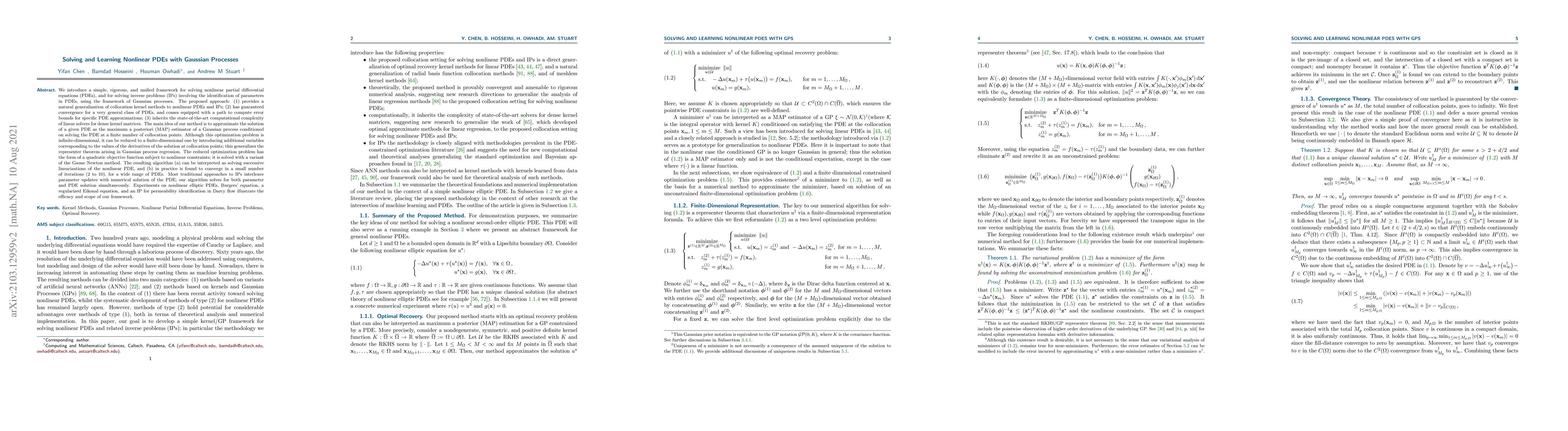 This paper proposes a Gaussian process framework for solving nonlinear partial differential equations (PDEs) and inverse problems, offering guaranteed convergence and error bounds. The method approximates PDE solutions as Gaussian process maximum a posteriori estimators, efficiently solving a finite-dimensional optimization problem via a Gauss-Newton variant, and demonstrating practical convergence in a small number of iterations.
