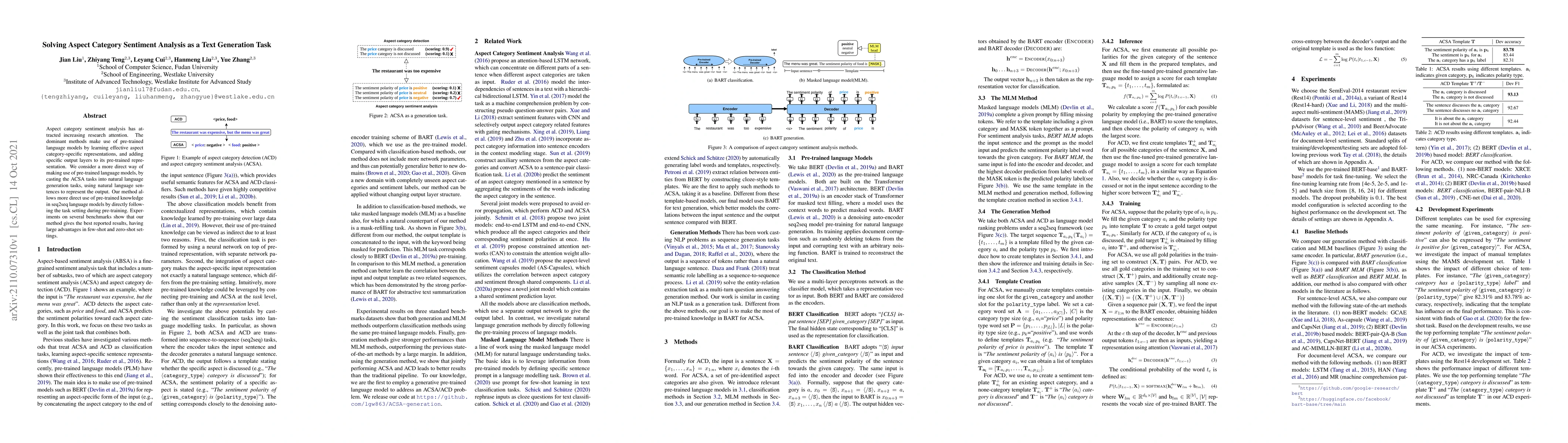 This paper proposes solving Aspect Category Sentiment Analysis (ACSA) as a text generation task by leveraging pre-trained language models. The method outperforms existing approaches, especially in few-shot and zero-shot settings, demonstrating the effectiveness of framing ACSA as a natural language generation task.