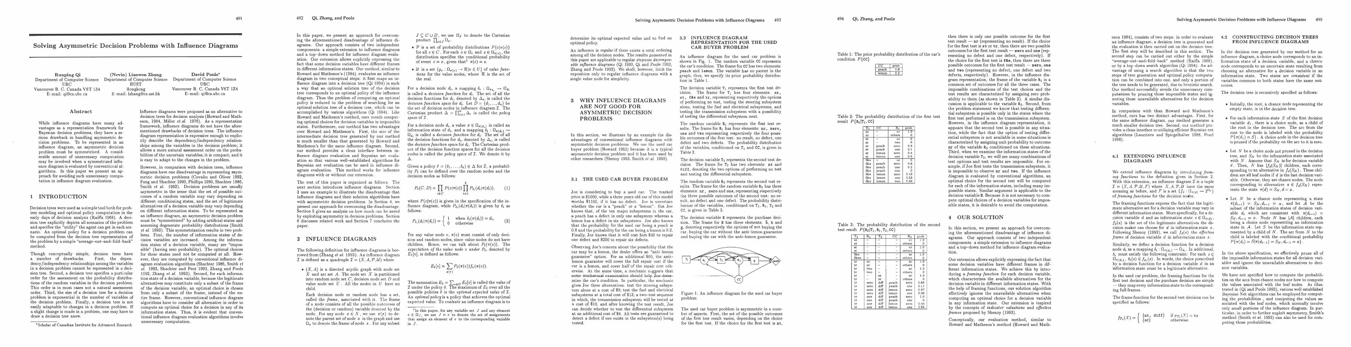 This paper proposes a method to efficiently solve asymmetric decision problems using influence diagrams without the need for symmetrization, thereby reducing unnecessary computational overhead during evaluation. The approach aims to improve the efficiency of influence diagram algorithms.