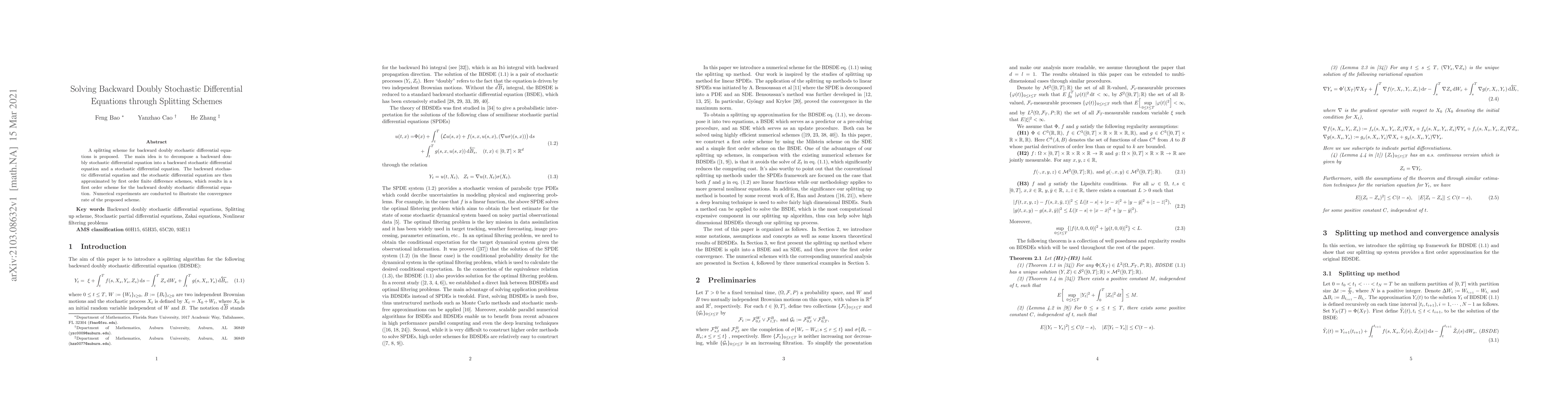 The paper proposes a splitting scheme for backward doubly stochastic differential equations (BSDEs) by decomposing them into a backward stochastic differential equation (BSDE) and a stochastic differential equation (SDE). These are approximated using first-order finite difference schemes.